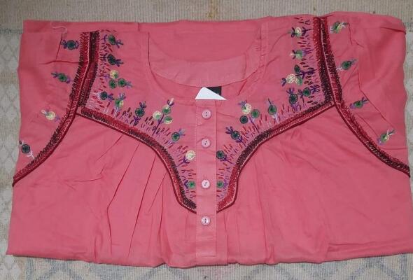 হাফ হাতা সুতি কাপরের মধ্যে সুতার কাজ করা ম্যাক্সি